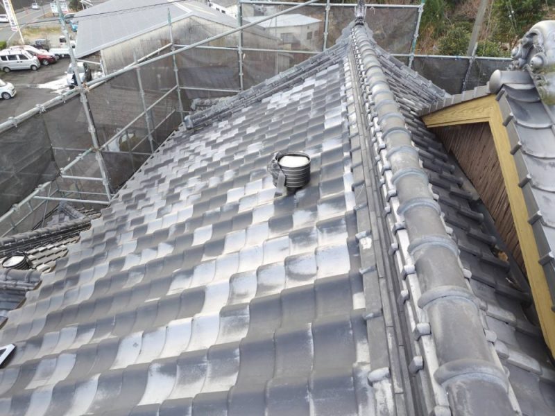 いぶし瓦再生塗装工事中です。